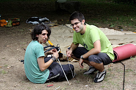 Aquest matí hem fet jocs d'aigua al riu i ara tot just comencem l'activitat de tarda. Sembla ser que vindrà un tal "Vicman" (de Víctor, no de Beakman) a fer-nos un test que es diu "coquito" per saber si tenim prou agilitat mental com per ser astronautes...
